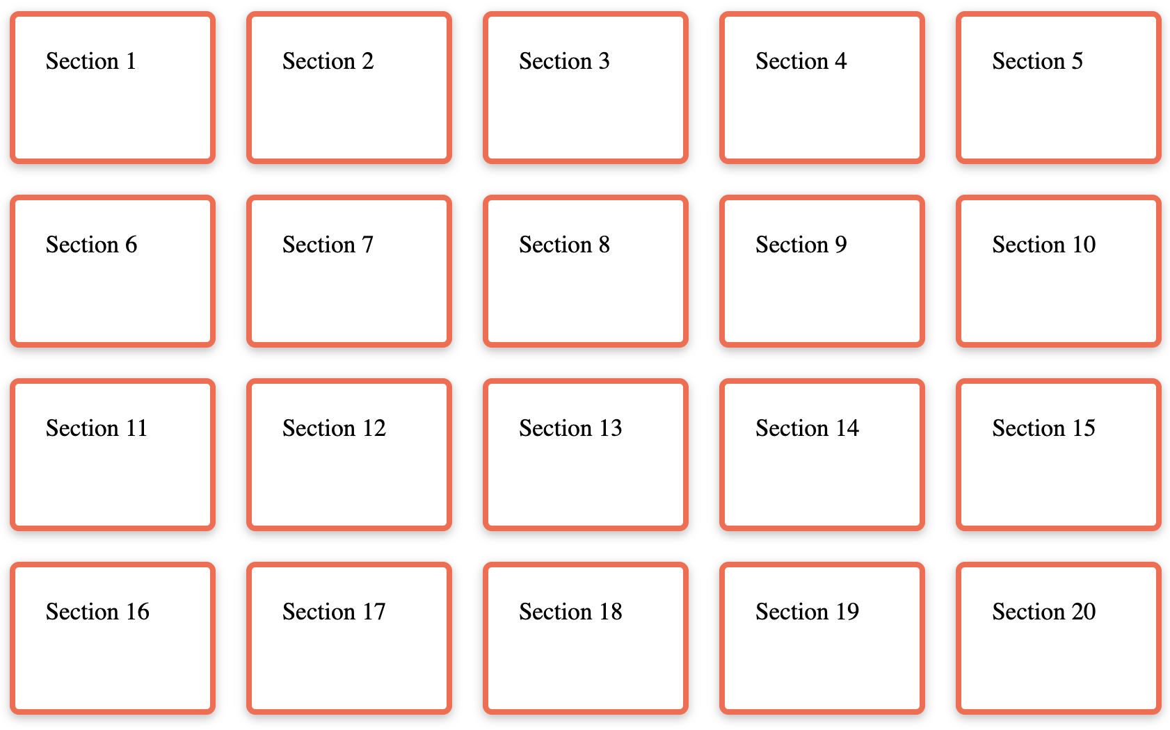 - Put all of the section tags on the same line (in a row)