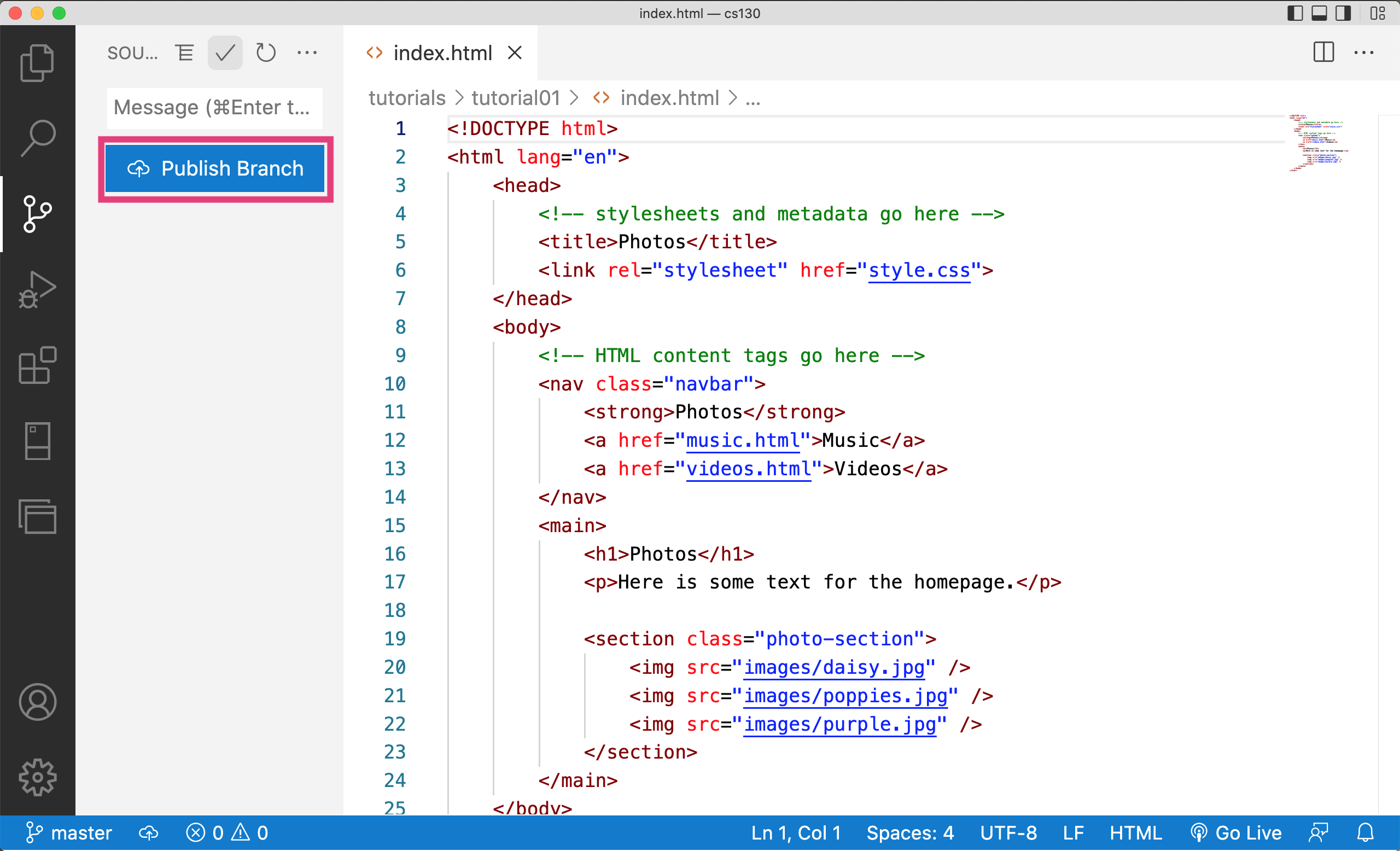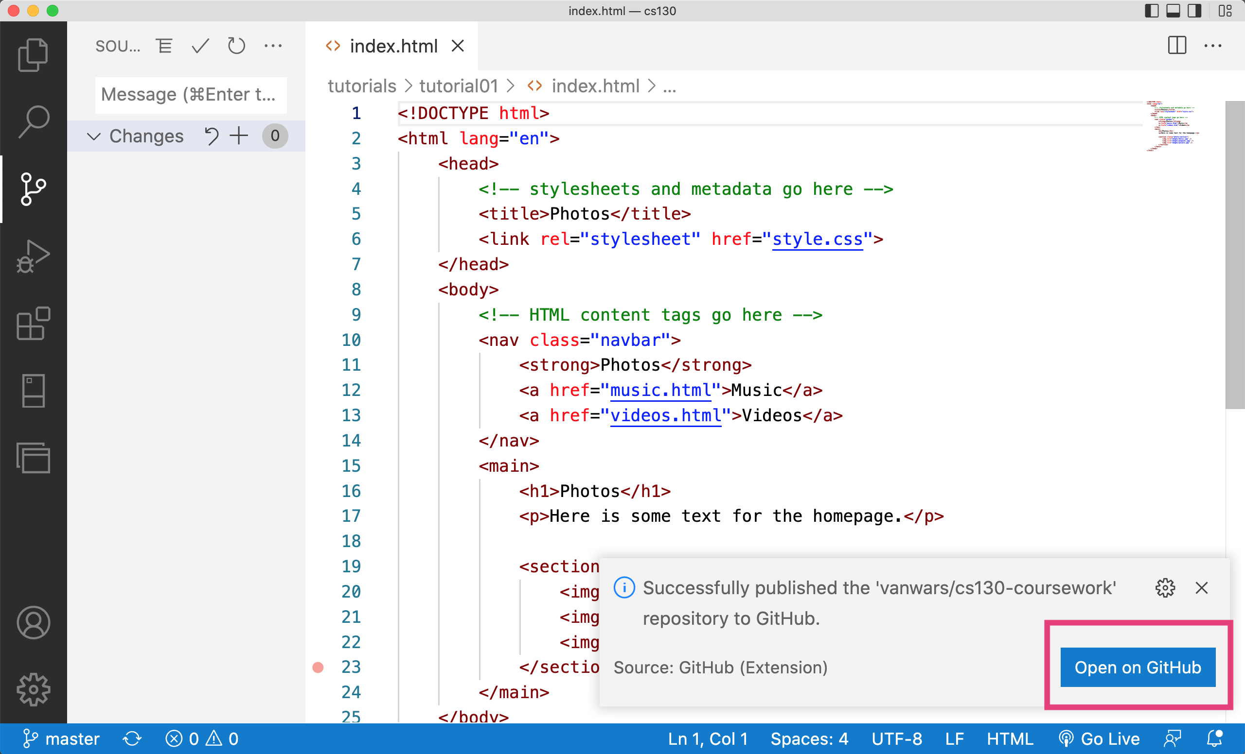 The goal of this activity is to help you publish your web page to GitHub. To do this: