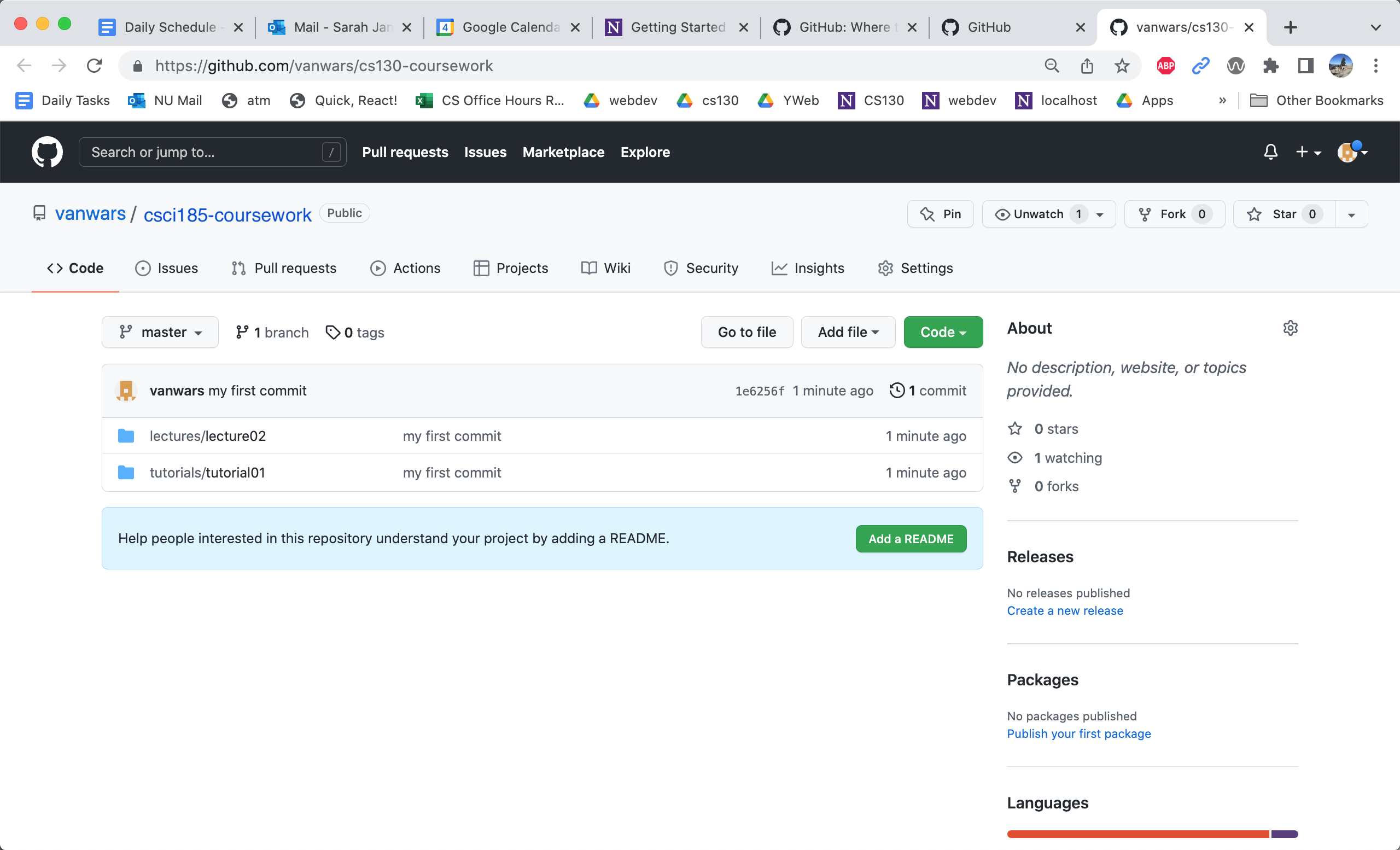 Clicking the button will open your newly created mser521 repository and show you all of your files (which are now in the cloud):