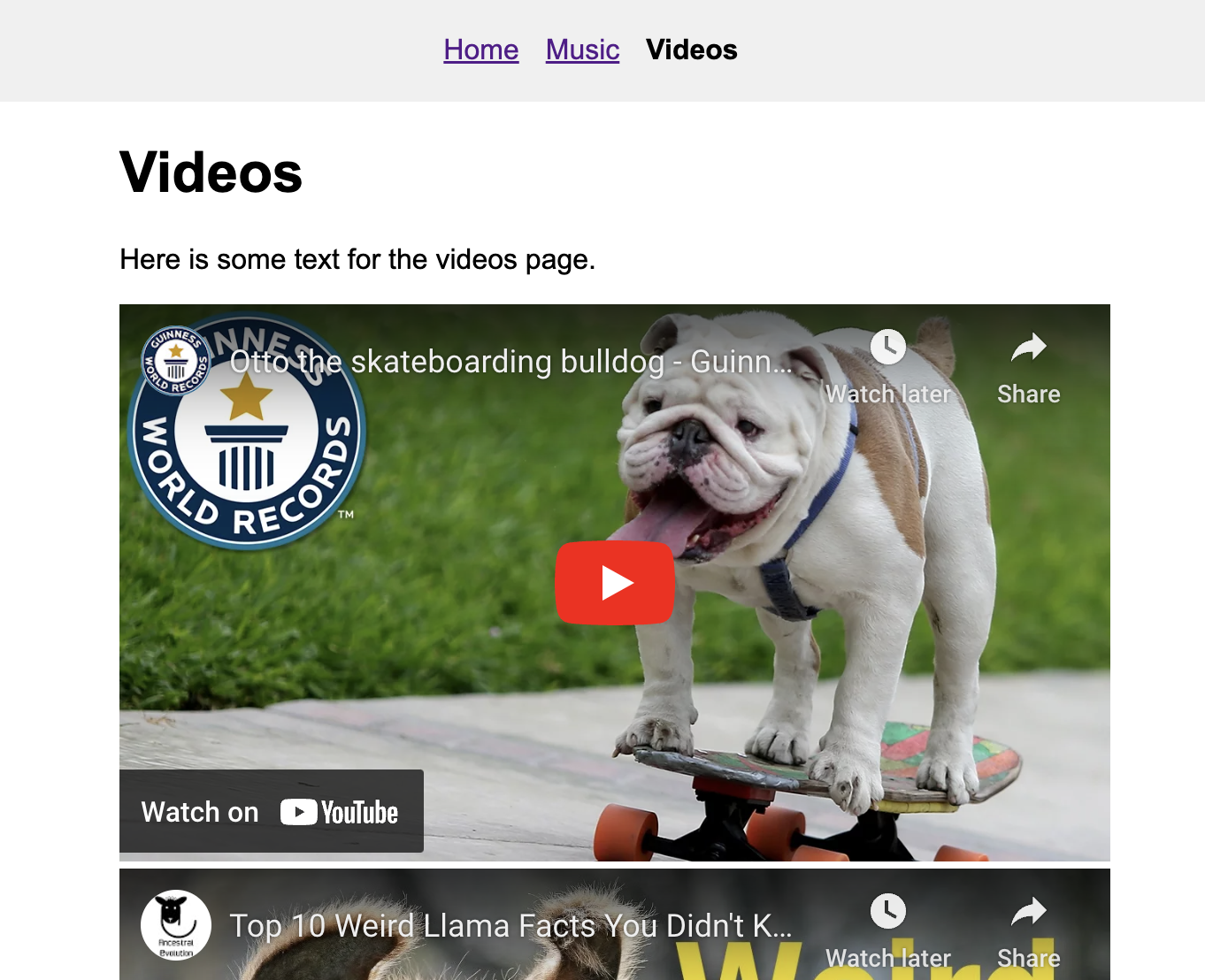 When you're done, your page should look like this (except with your videos):
